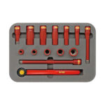 狭所で使える72歯ラチェットと絶縁ソケット類を揃えた、安全で作業性の高い絶縁レンチセット